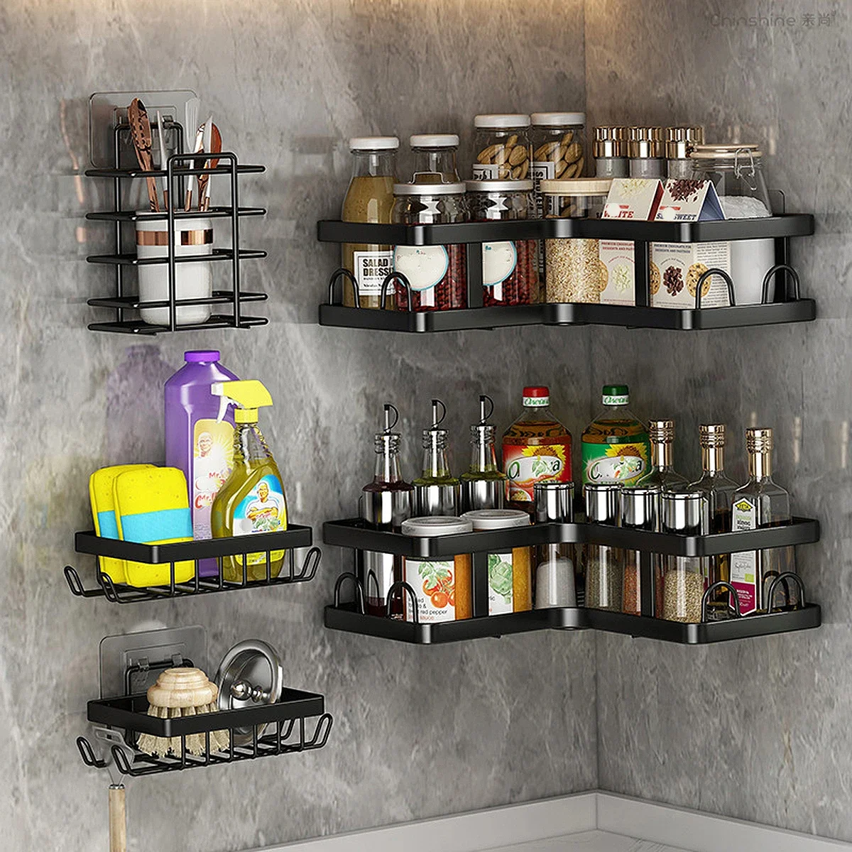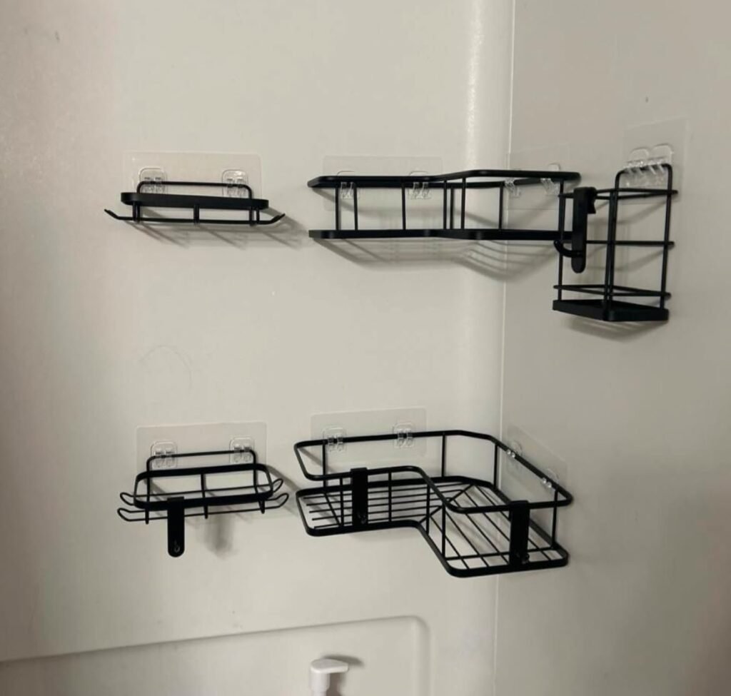 اجعل كل شيء في متناول يدك مع مجموعة الرفوف المعدنية اللاصقة، المصممة لتوفير مساحة مثالية في حمامك أو مطبخك