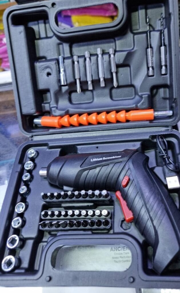 مزود برؤوس متعددة المقاسات لتلبية جميع احتياجاتك، تصميم مريح وسهل الاستخدام، بطارية قابلة للشحن تدوم طويلاً – مثالي للصيانة المنزلية والإلكترونيات وحتى الأعمال البسيطة.