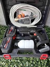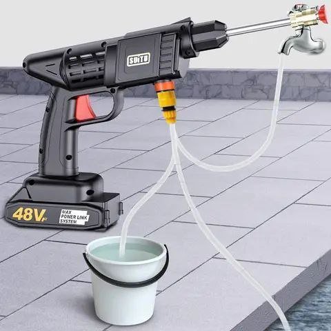يعمل ببطاريتين قابلتين للشحن بقوة عالية، تصميم عملي يمكن استخدامه مباشرة من الدلو أو ربطه بالصنبور، مثالي لغسل السيارات، الأرضيات، الحدائق وحتى رش النباتات – أداء قوي وسهولة استعمال في كل مكان.