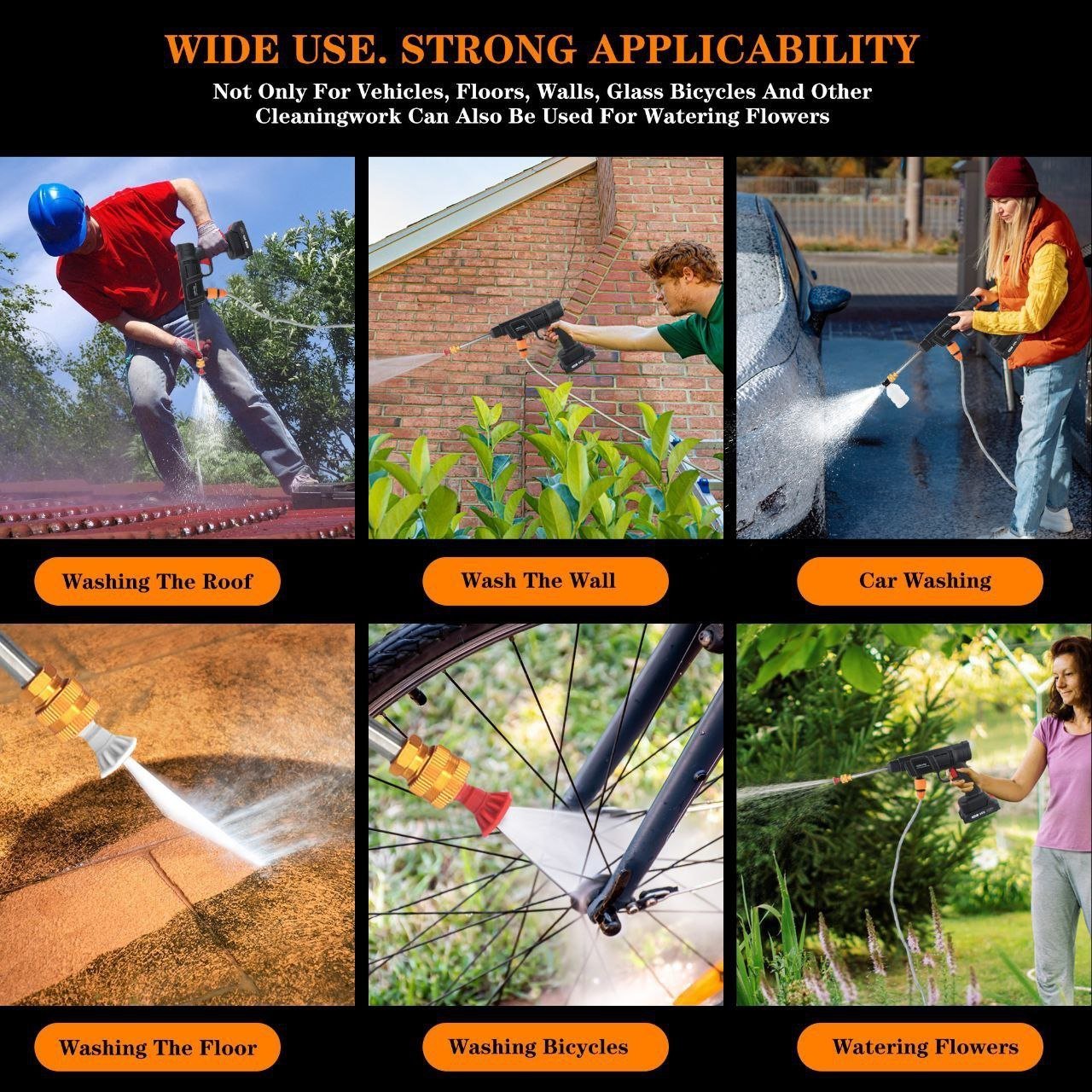 تقدر تستعمله لغسل السيارة بسرعة وسهولة، تنظيف الأرضيات والبلاط، رش النباتات فالحديقة، أو حتى تنظيف النوافذ والزوايا اللي صعيب توصل لها.
